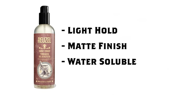 The Reuzel Surf Tonic salt spray conjures a natural texture and an appearance reminiscent of saltwater after a day spent at the beach. The spray gives moderate hold, volume and manageability with a matte finish.